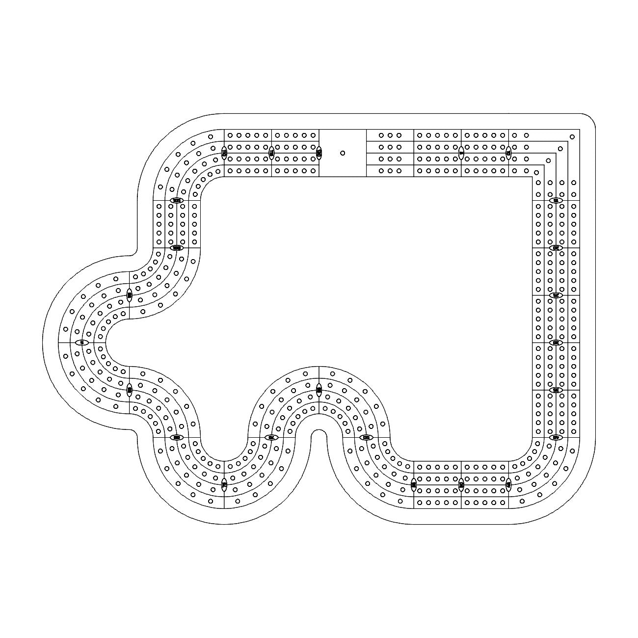 4 lane Cribbage board pattern / design / template with the track made to look like a corner of a puzzle